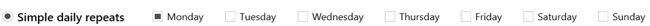 If a more complex repeat cycle is needed, once a month, fortnightly, last day of month for example, a scheduling calendar can be created and used instead.