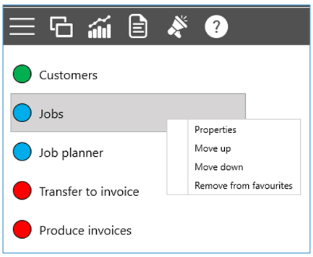 The favourites can also be re-ordered or removed using the same right-click menu.