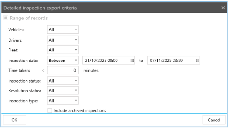 The report will now include a vehicle if it was not inspected during the reporting time range.