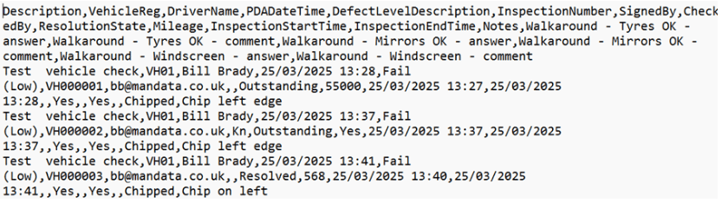 Vehicle Checks: Export